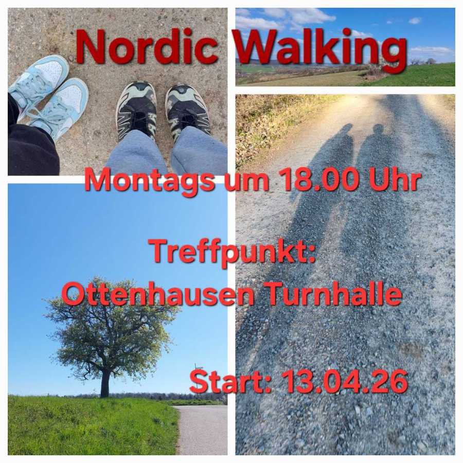 Wir starten wieder mit Nordic Walking. Ob mit oder ohne Stöcke, Anfänger oder Fortgeschritten, alle Walking Begeisterten sind herzlich willkommen mit unserer Kursleiterin Andrea Weiler ca. 90 Minuten rund um Ottenhausen zu walken.